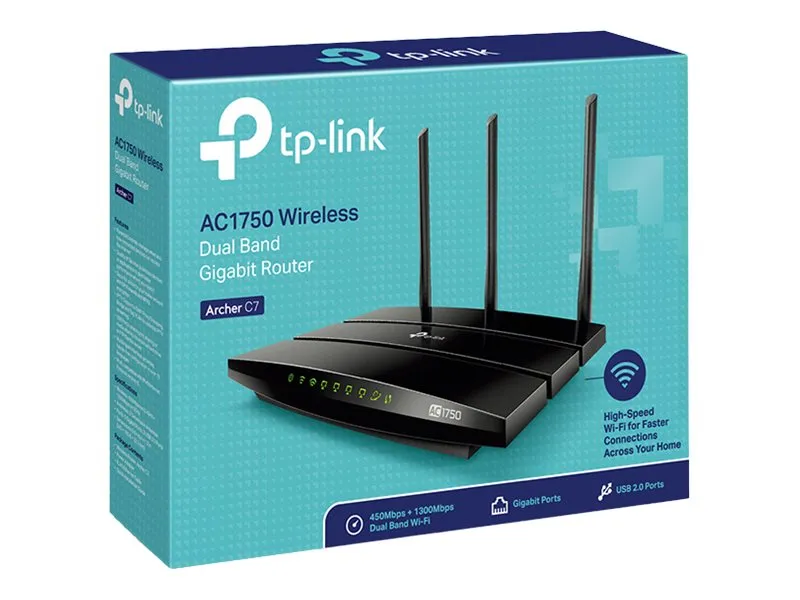 TP-LINK's Archer C7 comes with the next generation Wi-Fi standard - 802.11ac, 3 times faster than wireless N speeds and delivering a combined wireless data transfer rate of up to 1.75 Gbps. With 1.3 Gbps wireless speeds over the crystal clear 5 GHz band and 450 Mbps over the 2.4 GHz band, the Archer C7 is the superior choice for seamless HD streaming, online gaming and other bandwidth-intensive tasks.