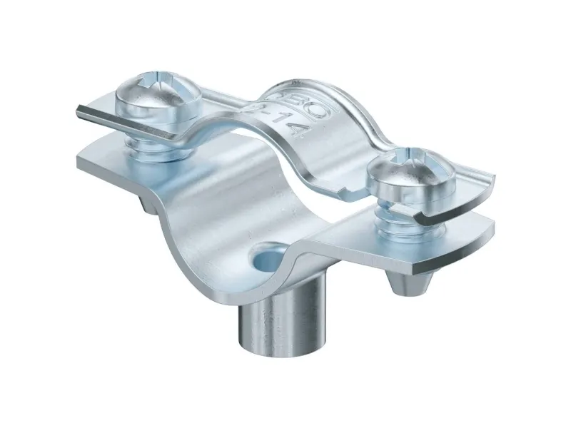 obo Bettermann Vertr afstandsklemme med gevindtilslutning ASG 732 14 G. Afstandsstykker til montering af rør og kabler på væg, loft og gulv. Med selvsikrende overdel. Fastgørelse med udgangspunkt i indvendigt gevind. Overflader G og ft fra Schellenstørrelse 20 egnet til montering med sømapparat eller boltkoblingsapparat. Godkendt til funktionsbevaring iht. din 4102 del 12, funktionsklasser E 30 til E 90.