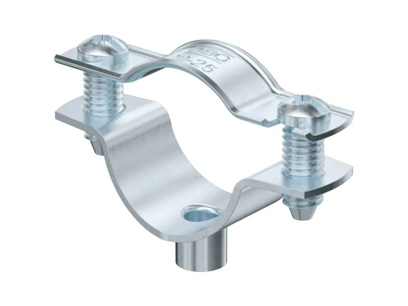obo Bettermann Vertr afstandsklemme med gevindtilslutning ASG 732 25 G. Afstandsstykker til montering af rør og kabler på væg, loft og gulv. Med selvsikrende overdel. Fastgørelse med udgangspunkt i indvendigt gevind. Overflader G og ft fra Schellenstørrelse 20 egnet til montering med sømapparat eller boltkoblingsapparat. Godkendt til funktionsbevaring iht. din 4102 del 12, funktionsklasser E 30 til E 90.