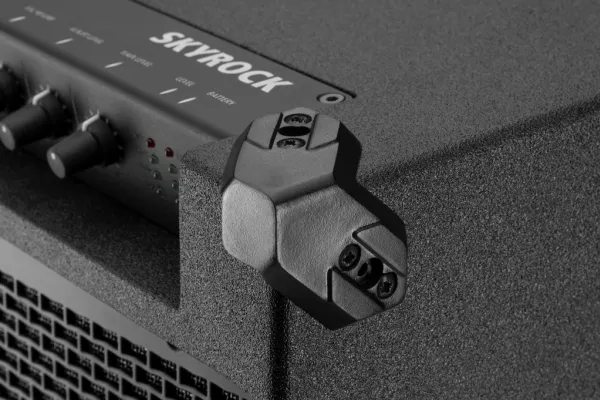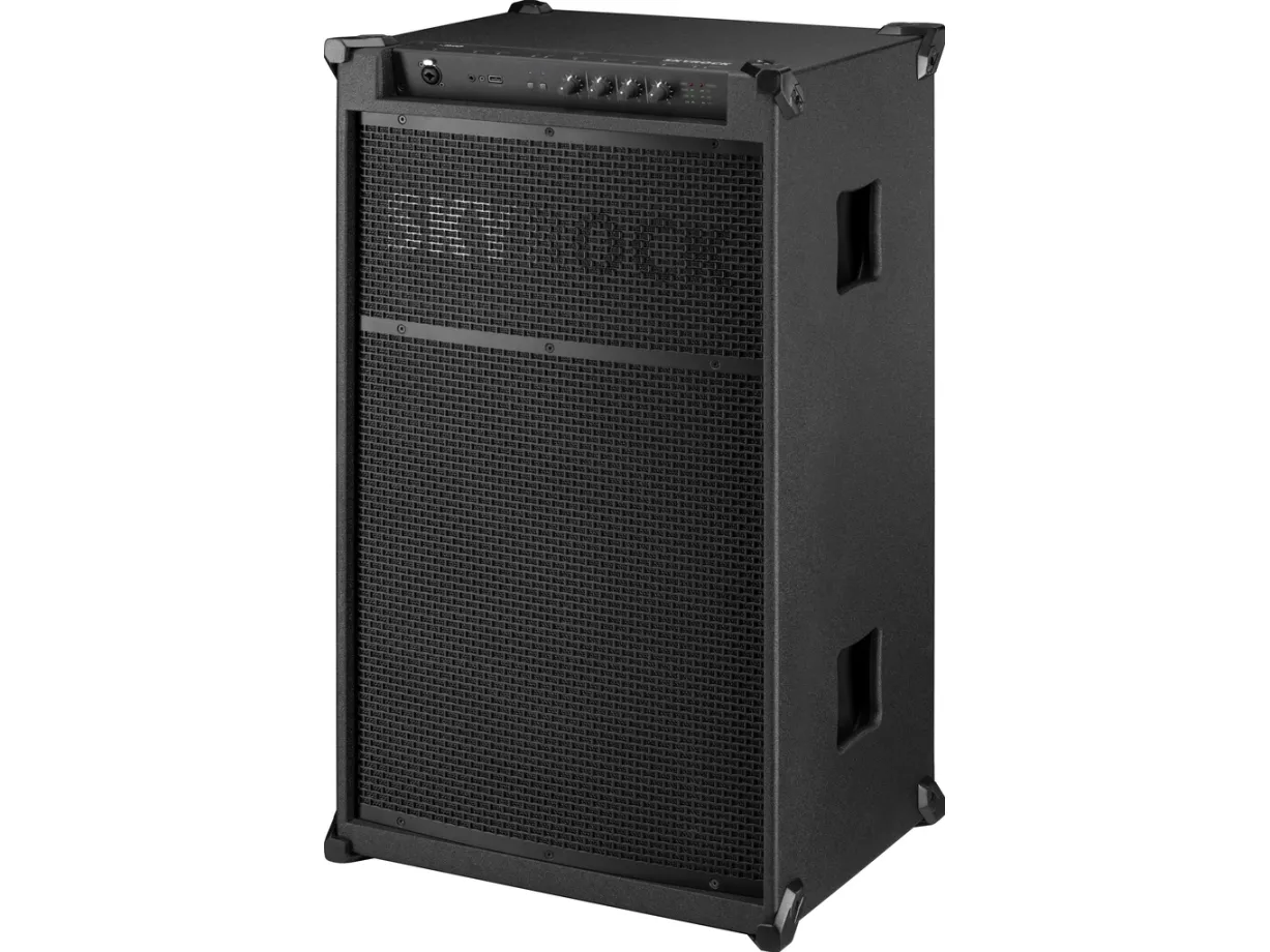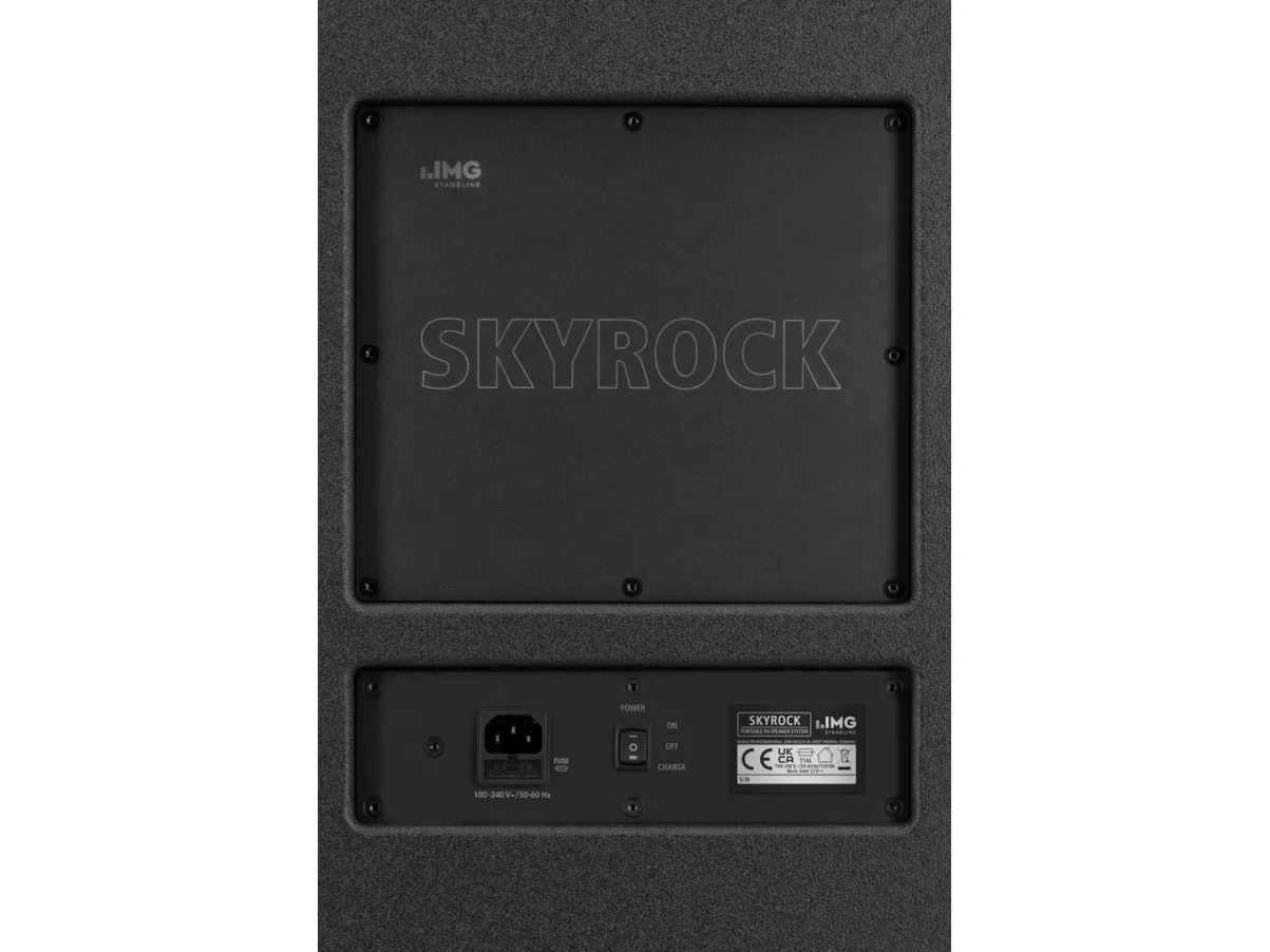 Portable PA speaker system,;with integrated Bluetooth receiver.;#Operation via mains connection or integrated rechargeable lead gel battery 12 V/18 Ah (operating time at moderate volume: up to 40 hours, operating time at full volume: up to 10 hours), with LED for indicating charging status;#Bluetooth receiver (version 5.0) for wireless connection of portable audio players;#Bluetooth TWS feature (True Wireless Stereo) for linking 2 x PA speaker system SKYROCK to a stereo speaker system;#High-performance class D version 120 W;#2-way speaker system with 38 cm (15") bass speaker and 25.4 mm (1") horn tweeter;#1 adjustable microphone input via comb. jack (XLR/6.3 mm);#1 adjustable aux input (3.5 mm jack);#Adjustable reverb via microphone input;#USB charging port for portable audio players;;Manufacturer information:;MONACOR INTERNATIONAL GmbH & Co. KG Konsul-Smidt-Str. 68 28217 Bremen Germany [email protected];Warning and Safety Instructions;The device is supplied with dangerous mains voltage. Leave servicing to skilled personnel only and do not insert anything into the air vents. Risk of electric shock! Do not use this device and disconnect it immediately from the power supply if the device or the power supply cable is visibly damaged, if a defect might have occurred after the device was dropped or suffered a similar accident, if malfunctions occur. Any repairs must be carried out by specialists. The product is suitable for indoor use only. Protect it against dripping water, splash water and high air humidity (admissible ambient temperature range is 0 - 40 °C). Never pull the mains cable to disconnect the mains plug from the socket, always seize the plug. The heat generated in the device must be dissipated by air circulation. Never cover the air vents of the housing. If the device is to be put out of operation definitely, dispose of the product in accordance with local regulations. Never put (rechargeable) batteries in the household waste. Always dispose of the batteries in accordance with local regulations.