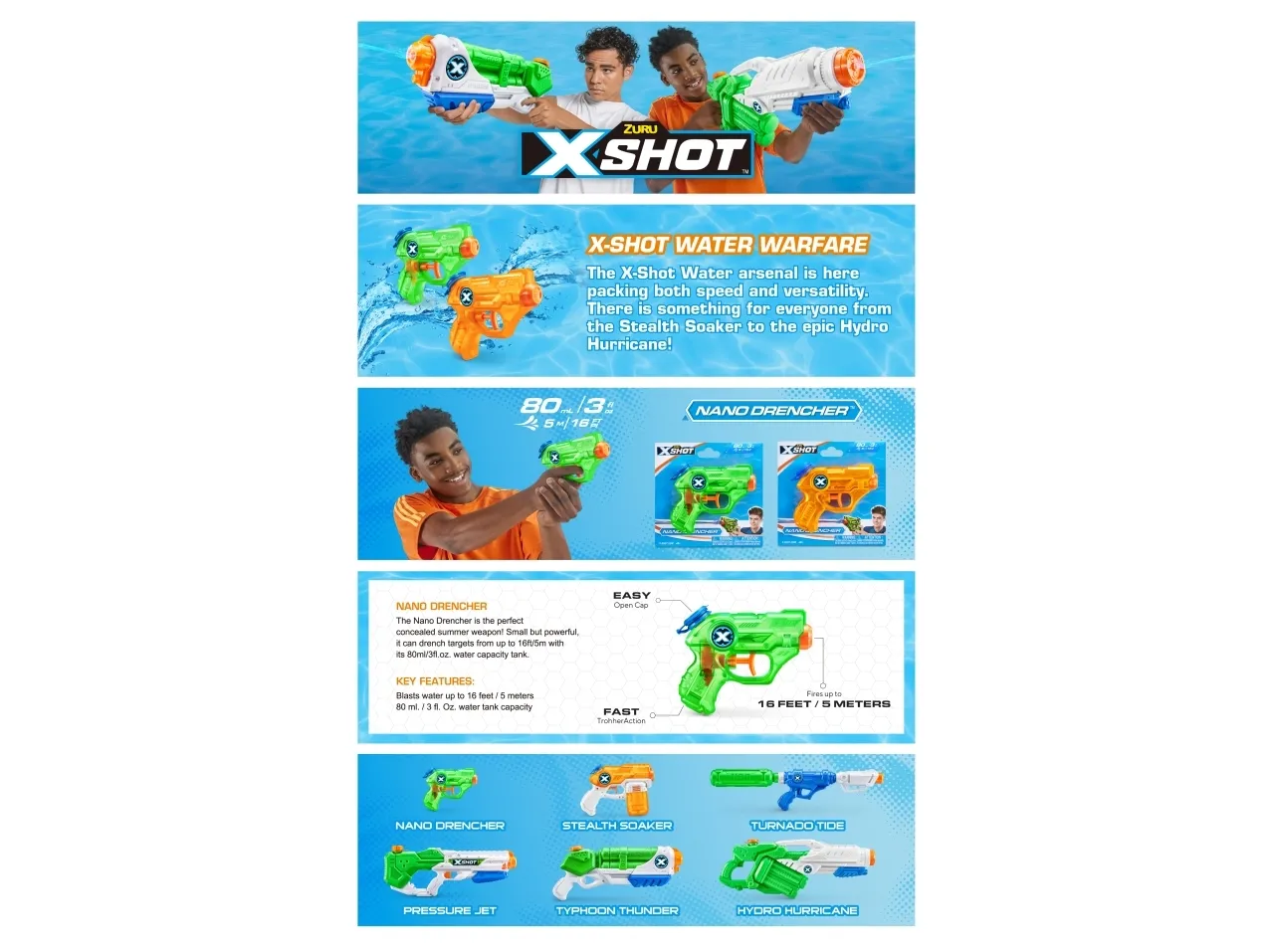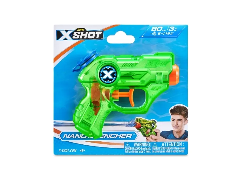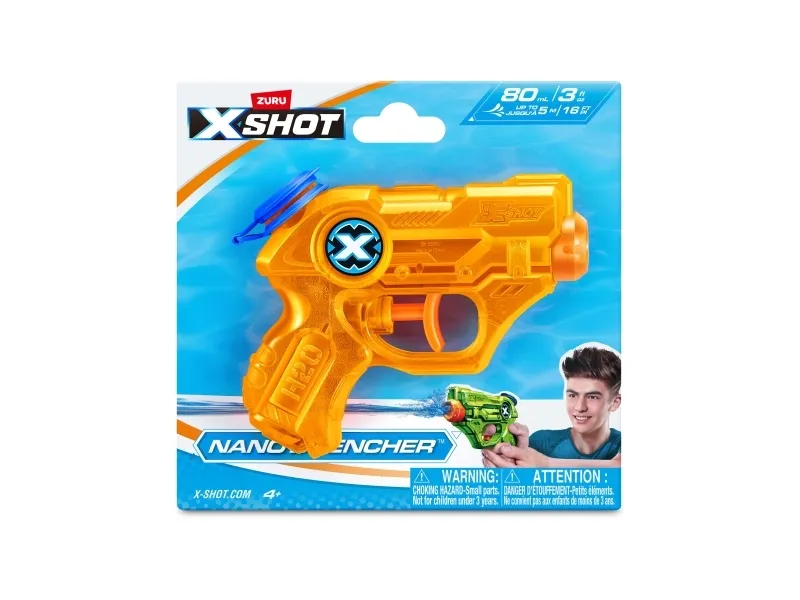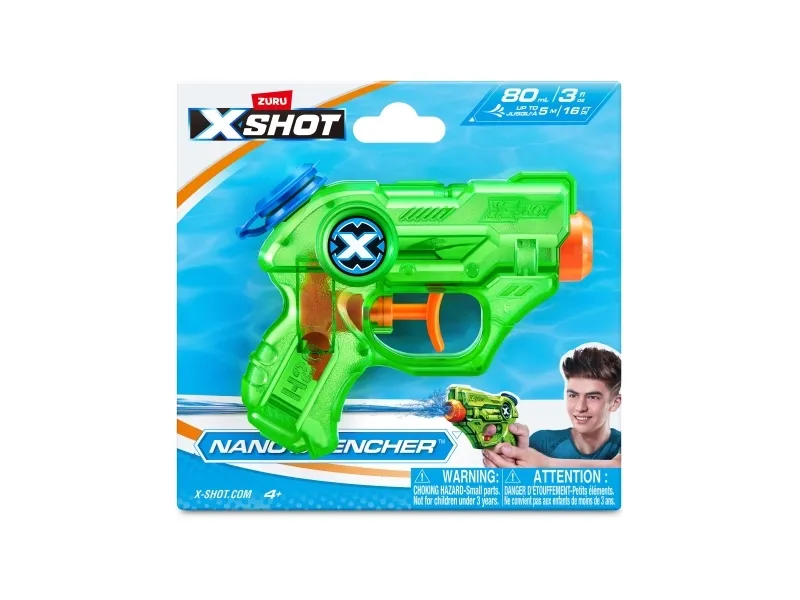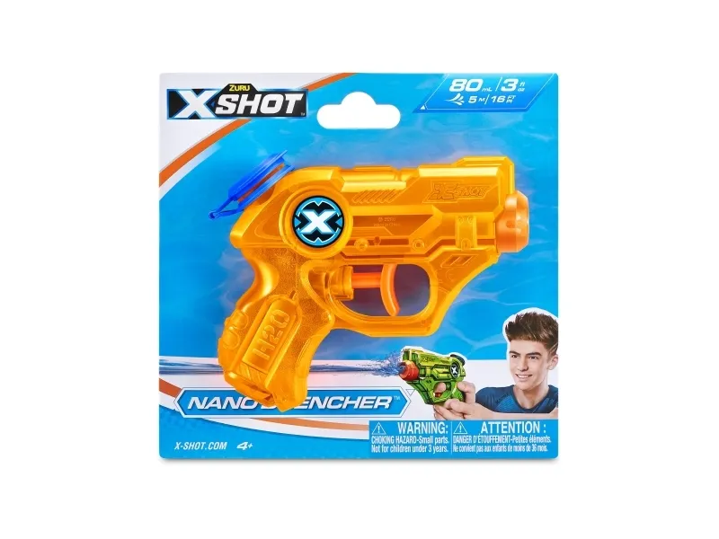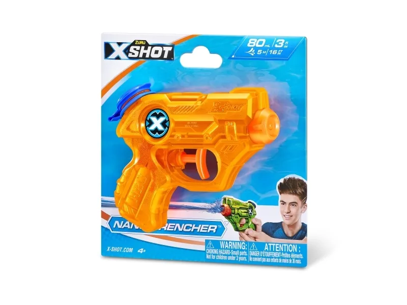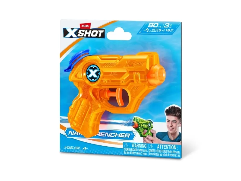 X-SHOT Water Warfare-arsenalet har ankommet for ekstremvannskyting. Ikke la størrelsen på Nano Drencher lure deg: liten, men kraftig, du kan overdøve konkurrentene fra opptil 5 meter med vanntanken på 80 ml!