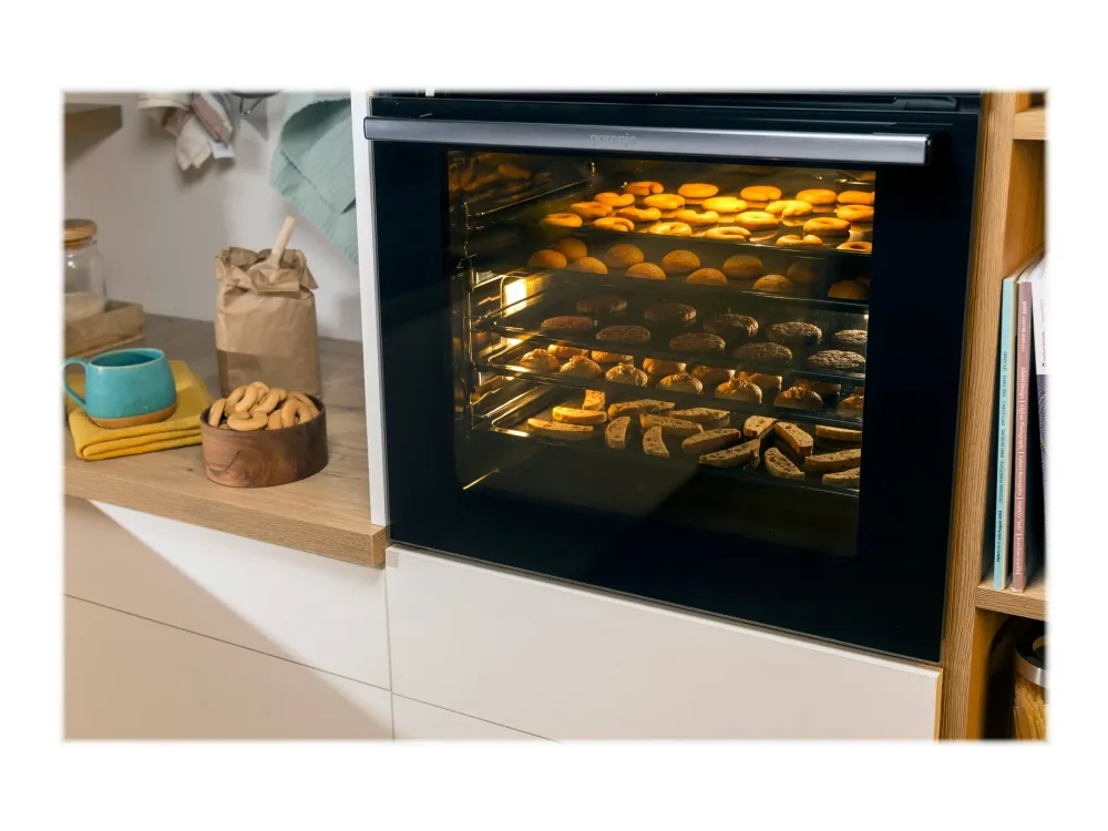 Now you can have the crispiness and tastiness of fried food without the extra calories. This method of extremely intensive baking with hot air doesn't require any fat to ensure that perfectly delicious crunchy golden crust. Suitable for small cuts of meat, fish, vegetables and preprepared frozen products, like French fries and chicken nuggets.