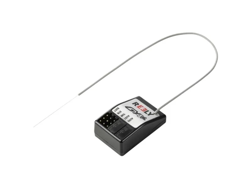 Rreceiver til modelbygning Modtager med indbygget gyroskopReely RY4 Gyro modtager RY4 er udviklet til fjernbetjening RC GY4 og modtager signaler på fire kanaler på 2,4 GHz-frekvensbåndet. På trods af indbygget gyroskop vejer letvægteren med Futaba/JR-stik kun 5 gram.