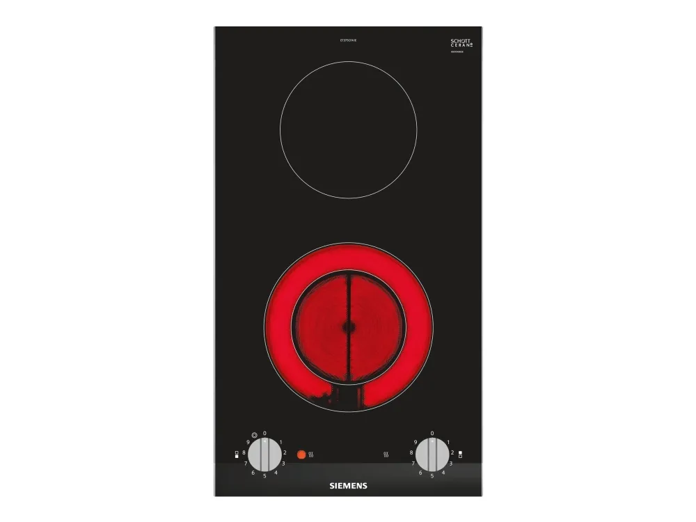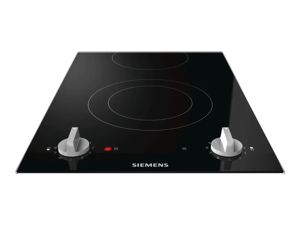 Siemens iQ300 ET375CFA1E - Keramisk komfyrtopp - 2 plater - Nisje - bredde: 27 cm - dybde: 49 cm - med sidepynt av rustfritt stål, - med fasettert frontkant - børstet aluminium / svart