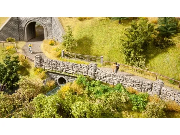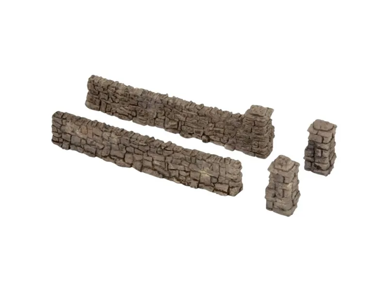 N stenmur Sten på stenDe små mure er meget velegnede til at indskabe jord og gårde eller til at afgrænse marker. Ved hjælp af de enkelte murdele og søjler kan mange individuelle indbygningssituationer mestres. Murene kan udstyres med en puksavDemonteret og limet med sekunder eller varmlim. De er håndmalet realistisk.Stenmuren, som består af natursten, er et populært middel til at skabe afgrænsninger i en naturhave. Ved en tilfældig blanding af natursten med mørtel opstår stenens unikke beskaffenhed.Bemærk: Sættet indeholder tolv dele: Fire murelementer med hver en søjle, tre murelementer uden piller, samt fem enkelte pile