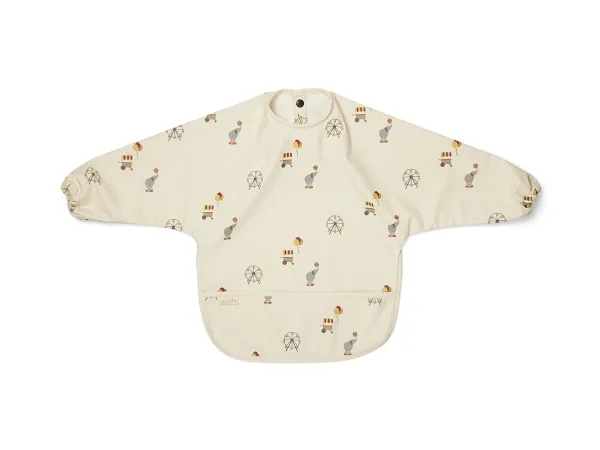 SPISEFORKLÆDE MED LANGE ÆRMER Luna spiseforklæde er et must have til småfolk, der er ved at lære at spise selv. Spiseforklædet sørger for at holde barnet ren og tør under hele måltidet. Den genanvendelige polyester gør spiseforklædet nem at rengøre med en klud, så den er klar til næste måltid.