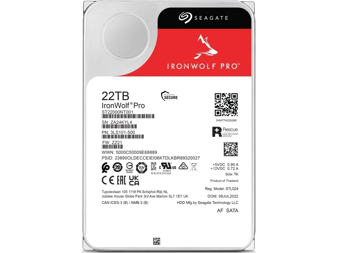 Seagate IronWolf Pro ST22000NT001 - Harddisk - 22 TB - intern - 3.5" - SATA 6Gb/s - 7200 rpm - buffer: 512 MB - med 3-års Seagate Rescue Data Recovery