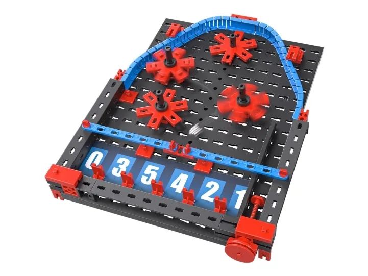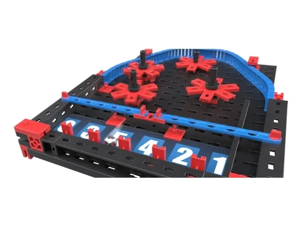 Fischertechnik er et spændende byggelegetøj koncept, der udvikler barnets kreative side samtidig med indlæring af teknologi og videnskab på en nem og legende måde. Antal dele: 89 Anbefales fra 7 år Build first - then play together! Included as a game in "Build your own game" set. Tre, to, en ? afsted! Bolden bliver kastet ind på banen. Nu skal du være forsigtig, for bolden rammer forskellige forhindringer, der påvirker den rute, den tager på tværs af spillefeltet. Hvilket tal lander bolden på? Hvem samler flest point og vinder spillet?