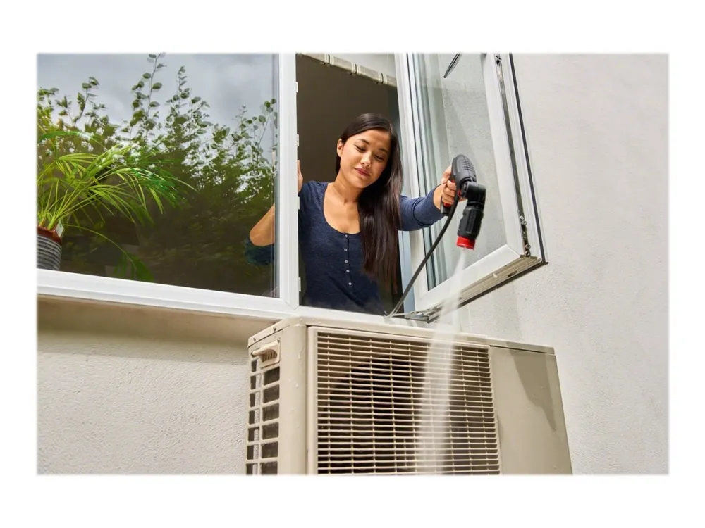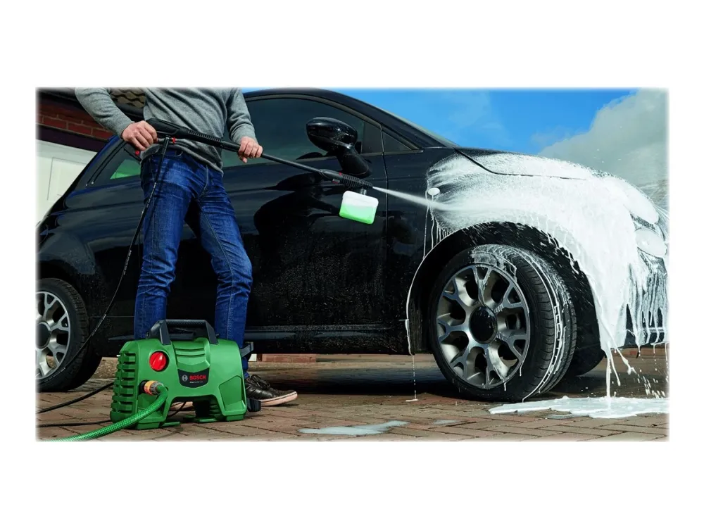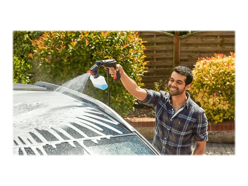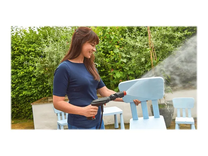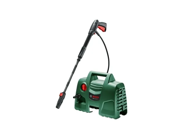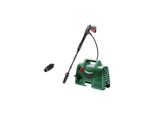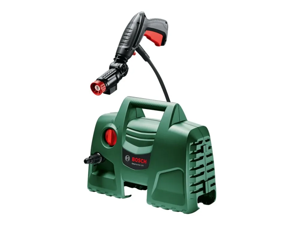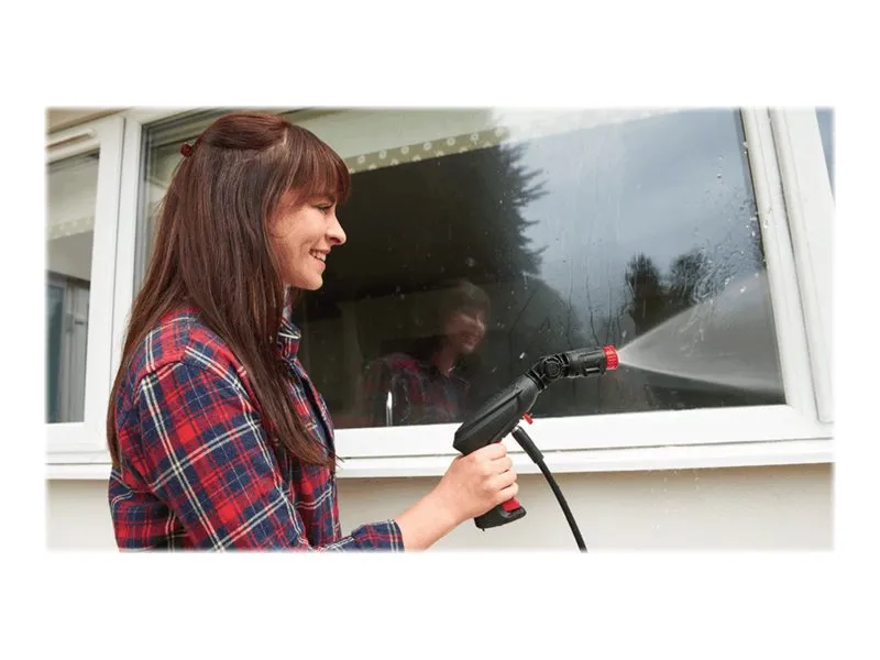 This compact high-pressure washer offers fast and effortless cleaning performance. The EasyAquatak 100 is easy to maneuver and store due to its compact design. With 100-bar cleaning power and a Variable Fan Jet Nozzle, cleaning cars, patios, and garden furniture is easy. Push-fit connections make setting up easy.