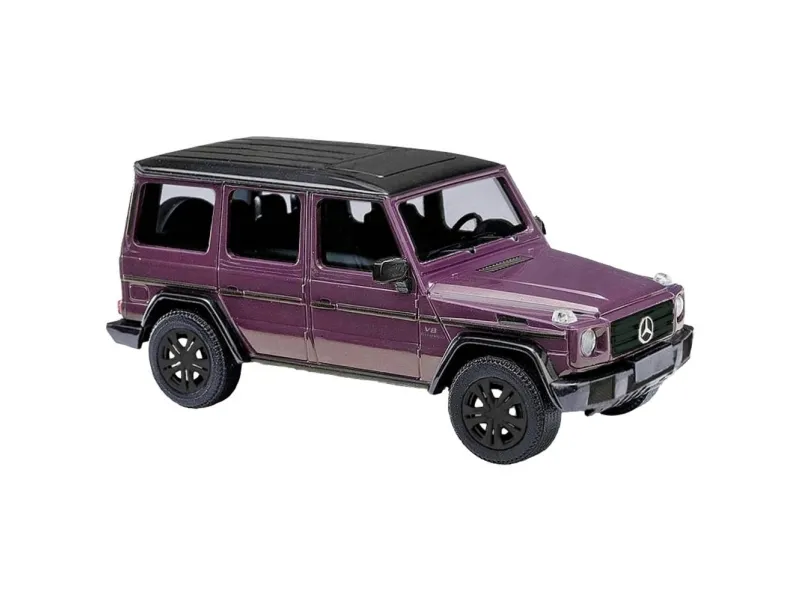 H0 Mercedes-Benz G-klasse Edition 35 violet I 35 år har der været et uændret karosseri, et koncept, der er klar til brug og kan lide! G-klassens store popularitet understreger dette. Til denne særlige jubilæum dukkede der en eksklusiv serie af typerne G 350 BlueTEC og G500. Letmetalhjulene på 18 tommer i 5-egers design stråler i en skinnende sort, taget i obsidiansort - en spændingsfyldt kontrast til de specialtilbudte farver. Vi har naturligvis realiseret disse særlige forbilleder i målestok 1:87.