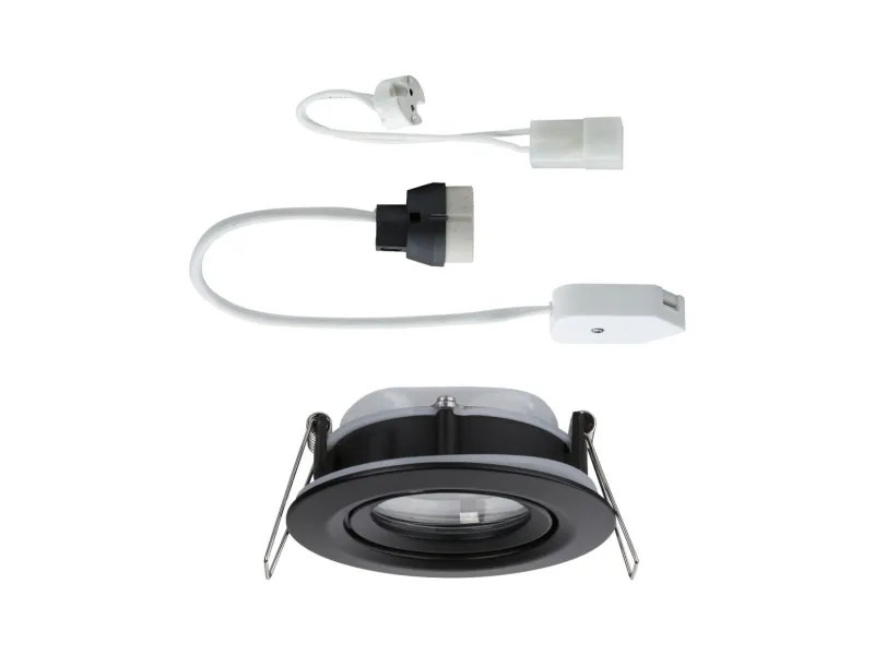 Indbygningslampe Nova Plus kan drejes IP65 rund 93mm 30° GU5,3 / GU10 maks. 35 W 230/12V, kan dæmpes sort mat Enkelt lygteMed drejelige spots for optimal belysningNem isætning af lys uden låseringFatninger til GU10 og GU5,3 medfølgerIP-beskyttelse: IP65 stænkvandsbeskyttetTil loftsmonteringHusk også at bestille den passende lyskilde! Det runde Nova Plus indbygningslampe i sort, egner sig både til nyinstallationer og til udskiftning af eksisterende installationer. Den kan monteres i lofter med et hulrum på kun 75 millimeter. Takket være den ukomplicerede fiksering med holdefjedre, forbliver loftet ubeskadiget også efter adskillige ind- og udbygning. Dæmpningsfunktionen muliggør en individuel tilpasning af lysstyrken og sørger for varmt hvidt arbejdslys og hyggelig dagligstuebelysning. spot kan indstilles individuelt takket være den svingbare mulighed. Med IP65-beskyttelsen er lampen specielt beskyttet mod indtrængning af vandstråler og derfor ideal for indbygning i fugtige rum eller udendørs. De separat tilgængelige pærer kan nemt fastgøres inde i indbygningsringene med en klemme - låseringe er derfor ikke nødvendigt.