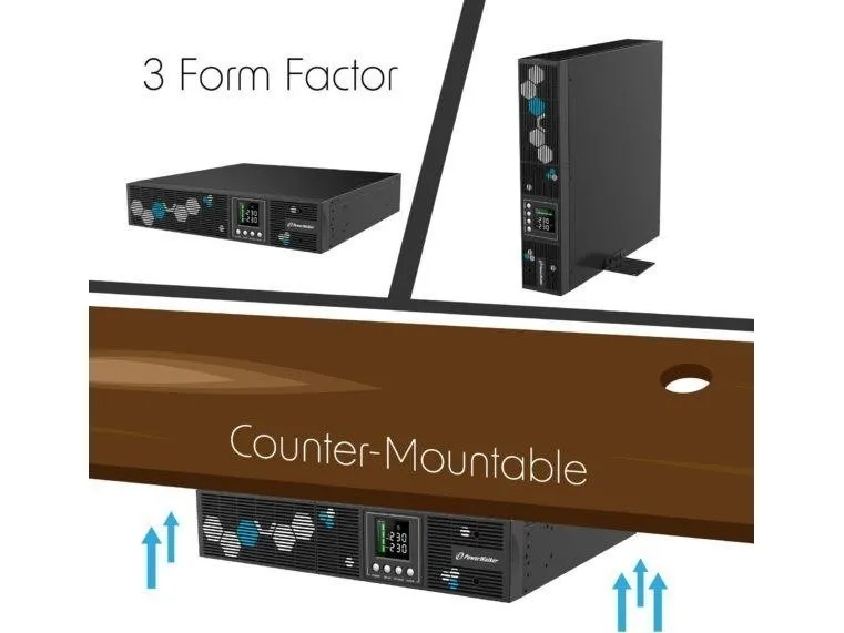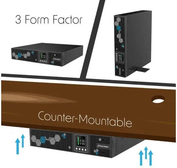 The PowerWalker VI RLP is a compact 2U Line-Interactive series with rack design. This UPS is the perfect outlet manager and will let you control the outlets individually. Remote switching, reboot each outlet, organize a schedule for the outlets, the possibilities are endless! With an output power factor of 0.9 and pure sine wave output, even the small models can cover most needs and loads. Batteries are easily replaceable by every user.In addition, the UPS can be mounted under a counter or table, thanks to the included installation mounts.PowerWalker VI 2000 RLP. UPS topology: Line-Interactive, Output power capacity: 2 kVA, Output power: 1800 W. AC outlet types: C13 coupler, Power plug: C14 coupler, AC outlets quantity: 8 AC outlet(s). Battery capacity: 9 Ah, Battery voltage: 12 V, Typical backup time at full load: 2 min. Form factor: Rackmount/Tower, Product colour: Black, Rack capacity: 2U. Nominal output voltage: 230 V