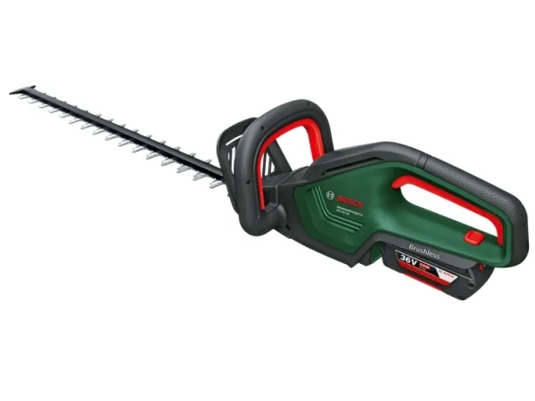 Frihet uten ledning: du trenger ikke lenger rette ut ledningen eller risikere å klippe over den. Sammen med den 540 mm lange kniven og knivavstanden på 20 mm sørger det elektroniske "Anti Blocking"-systemet for et kraftig kutt som takler enhver oppgave. 36 V lithium-ion-batteri som kan byttes ut med andre Bosch-elektroverktøy. Ladet helt opp på kun 45 minutter (80 % på 25 minutter).
