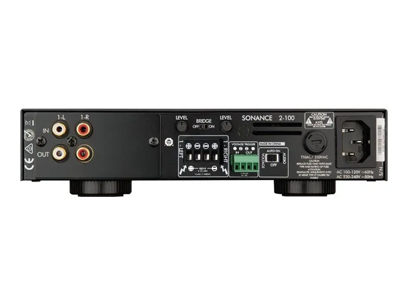 Lydinngang (RCA phono x 2) - bak Lydutgang (RCA phono x 2) - bak 2 x utgang høyttalere - bak Utløser (terminalblokk (klemme)) - bak