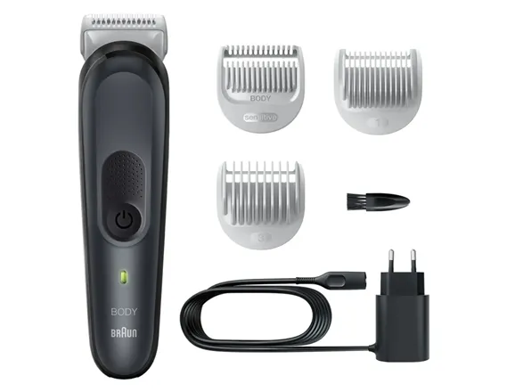 Braun BodyGroomer 3 BG3340. Product colour: Black, Grey, LED indicators: Charging, Minimum hair length: 0.5 mm. Power source: AC/Battery, Battery technology: Nickel-Metal Hydride (NiMH), Battery type: Built-in battery