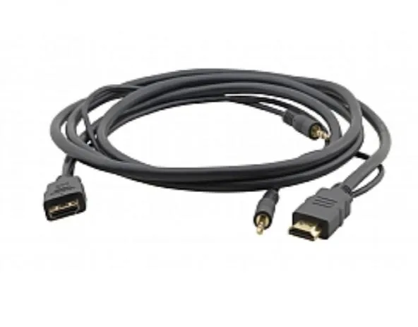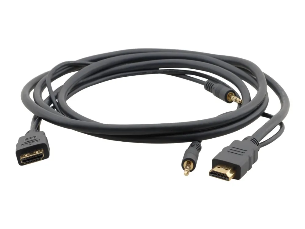 Kramer's C-MHMA/MHMA is a flexible high-speed HDMI cable with Ethernet and 3.5mm stereo audio. It is a high-performance cable with molded HDMI connectors at both ends that supports signals up to 1920x1200 @60Hz and HDMI Ethernet Channel, 12-bit Deep Color, x.v.Color™, Lip Sync, HDMI Uncompressed Audio Channels, Dolby TrueHD, DTS-HD, CEC. The cable does not embed audio.
