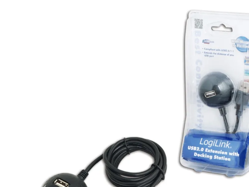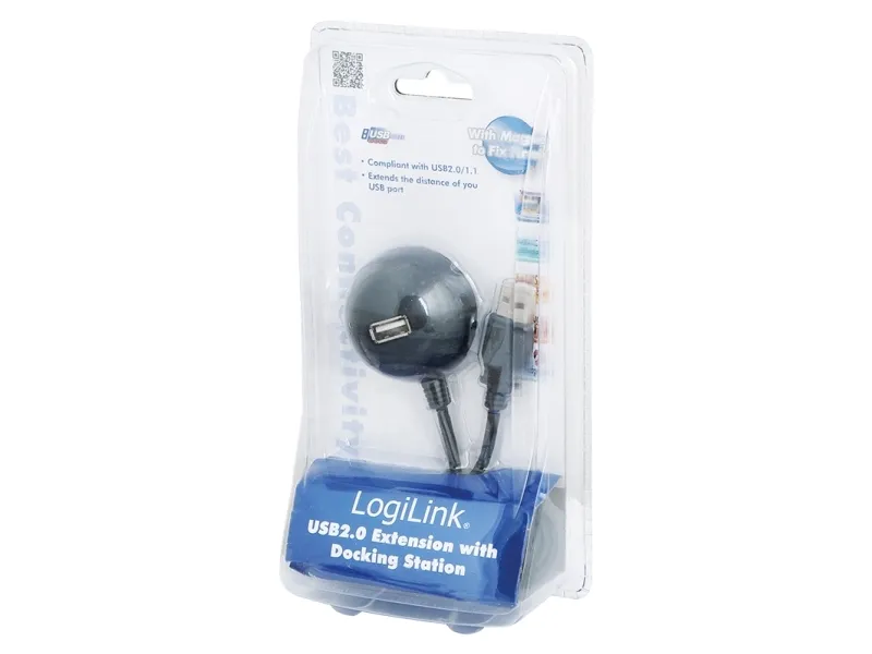 The LogiLink USB 2.0 Docking Station offers you an easy access to a USB port. Very useful as a USB extension, in order to access the port directly from your desk. Especially for devices, which need a connection in a straight position. - USB 2.0 Docking Station - Connector 1: USB (Type A) male - Connector 2: USB (Type A) female - Max Transfer Rate: 480 Mbit/s - Double shielded - Standard UL-2725 - Wire range: AWG 28 - Color: black