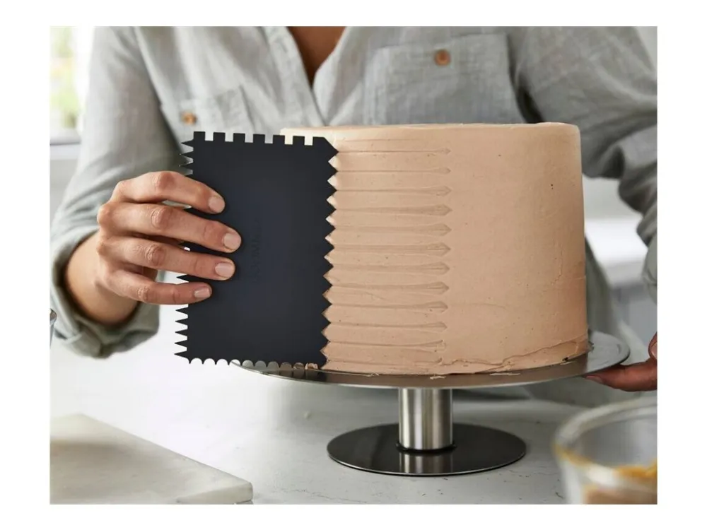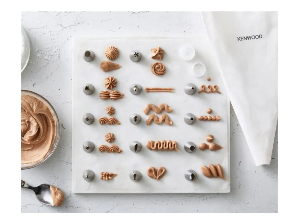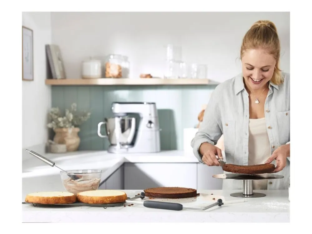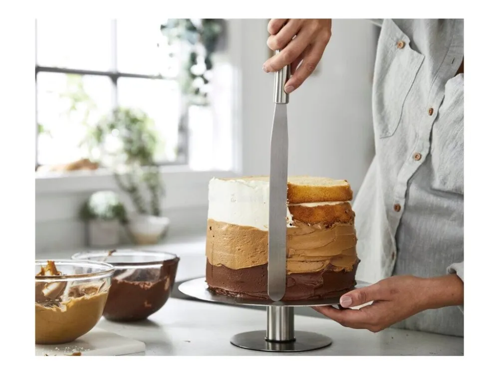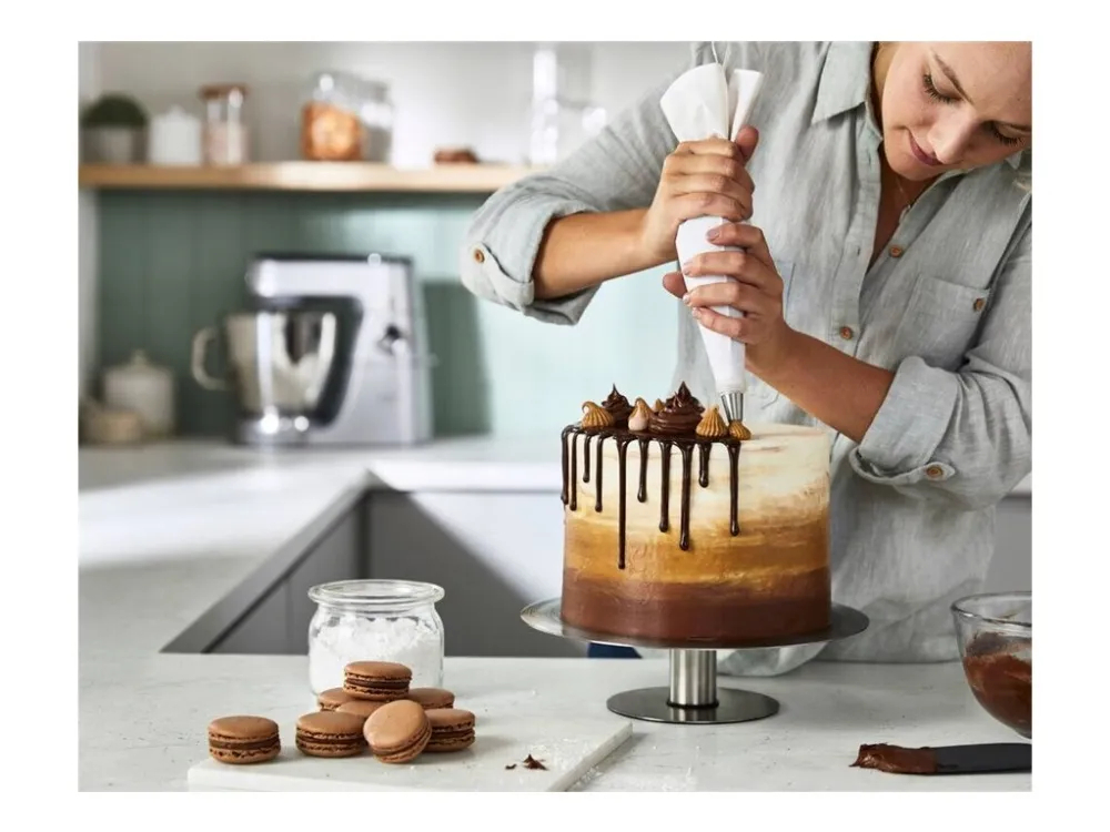 Add the finishing touches to your favorite bakes with this complete professional quality decorating set. Comprising of two premium stainless steel palette knives, stainless steel and silicone spatula, icing scrapers, piping bag with 14 nozzles, sponge cake cutter, and a stainless steel rotating cake stand, you'll have all the tools you need to help add the wow factor to all of your creations.