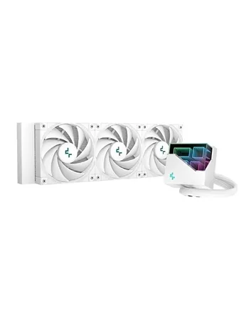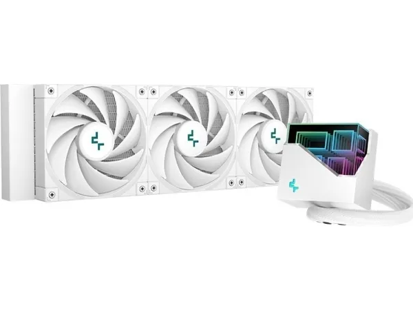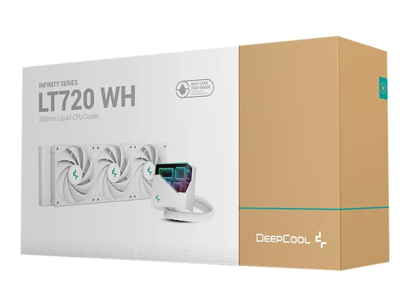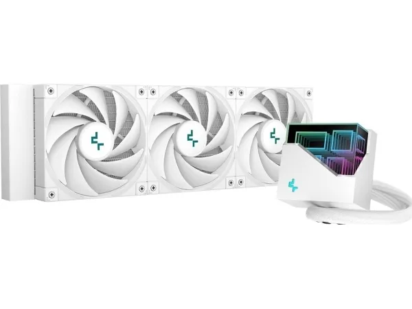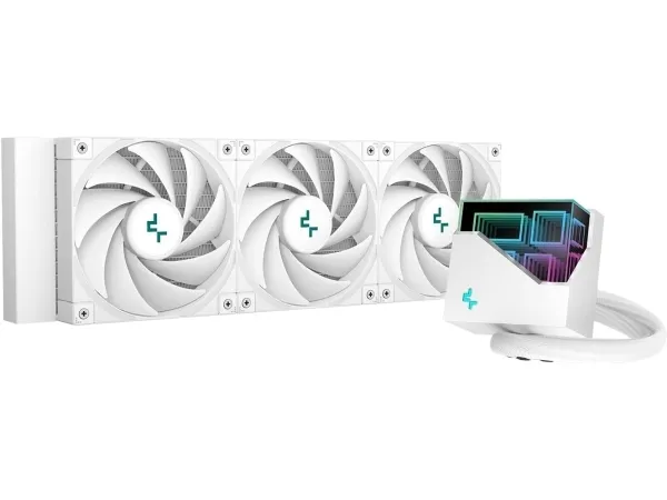 The DeepCool LT720 high-performance liquid CPU cooler provides strong heat dissipation power with a 360 mm radiator, three precision-tuned FK120 fans, and a multidimensional infinity mirror top cap.