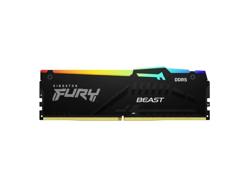 Kingston FURY Beast RGB delivers a boost of performance and style with high speeds, aggressive styling and RGB lighting that runs the length of the module for smooth and stunning effects. It features Plug-and-Play automatic overclocking at high speeds and is both Intel XMP-ready and ready for AMD Ryzen. FURY Beast RGB stays cool with its stylish, low-profile heat spreader.
