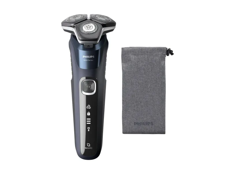 Discover the Philips 5000 Series S5885 shaver, designed for those who seek a high-quality grooming experience. This shaver features SkinIQ technology and SteelPrecision blades that adapt to your beard's density, providing an efficient and comfortable shave, whether dry or wet. With 60 min of cordless operation and a quick charge feature, it's always ready when you are. The fully washable design, accompanied by a cleaning brush, travel bag, and USB-A cable, makes it the perfect grooming tool for home or on-the-go. The inclusion of a pop-up trimmer for precise detailing of moustache and sideburns further enhances your grooming routine, making the Philips 5000 Series S5885 the ideal choice for those who value performance and convenience.