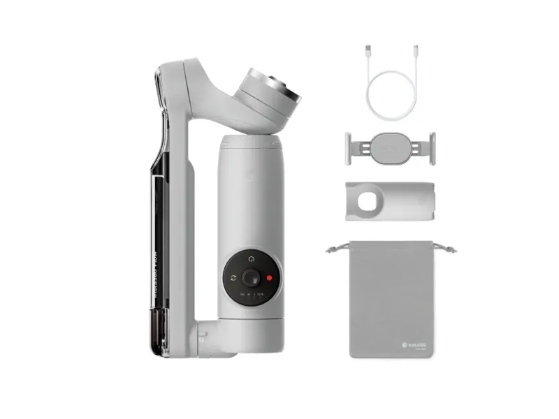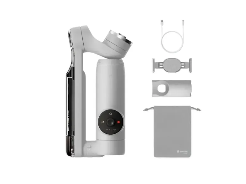 (1) x håndholdt stabilisator (1) x smarttelefonholder (1) x grepdeksel (1) x USB-C til USB-A ladekabel (1) x beskyttende pung