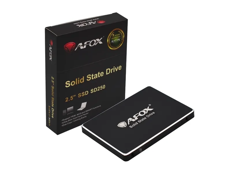 AFOX SD250-512GN. SSD capacity: 512 GB, SSD form factor: 2.5", Read speed: 500 MB/s, Write speed: 450 MB/s, Data transfer rate: 6 Gbit/s, Component for: PC/Laptop