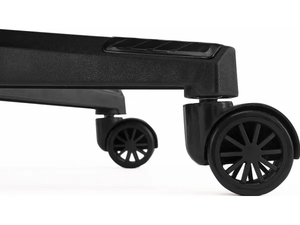 Hjulene laget av nylon omgitt av gummi etterlater ingen merker på gulvet, kjennetegnes av meget godt grep og stille bevegelse, samtidig som de tillater dynamisk endring av retning.