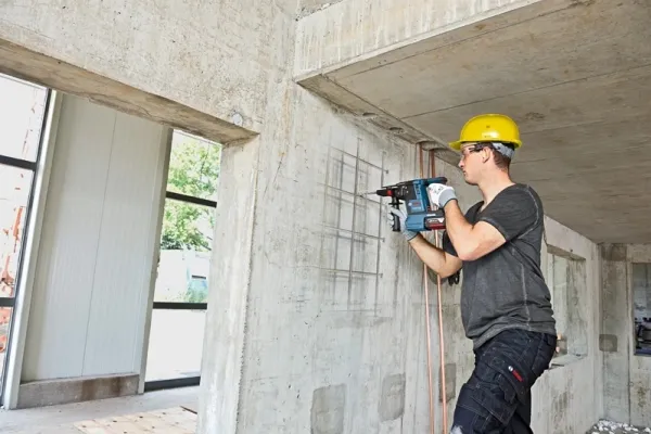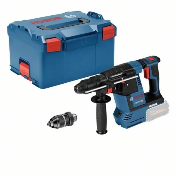 Batteridrevet borehammer med SDS plus GBH 18V-26 F Den ekstra støvudsugning GDE 18V-16 Professional kan kombineres med denne borehammer og giver en lukket HEPA-støvløsning til maksimal mobilitetHøjere brugerbeskyttelse og bedre håndtering takket være KickBack Control og Electronic Precision Control (EPC)En slagenergi på 2,6 joule sørger for en hurtig boring og en høj mejselsydelseDette el-værktøj egner sig til boring og mejsling i beton, murværk, træ og metal GBH 18V-26 F Professional med selvspændende borepatron er Allrounderen i Bosch SDS-plus batteri-borehammer-segment og dermed ideal til daglig anvendelse. Den ekstra støvudsugning GDE 18V-16 Professional kan kombineres med denne borehammer og giver en lukket HEPA-støvløsning til maksimal mobilitet. Borehammeren har desuden KickBack Control og Electronic Precision Control (EPC) for en bedre håndtering og øget brugerbeskyttelse. Den højtydende motor leverer 2,6 joule slagenergi og høj slibeydelse.