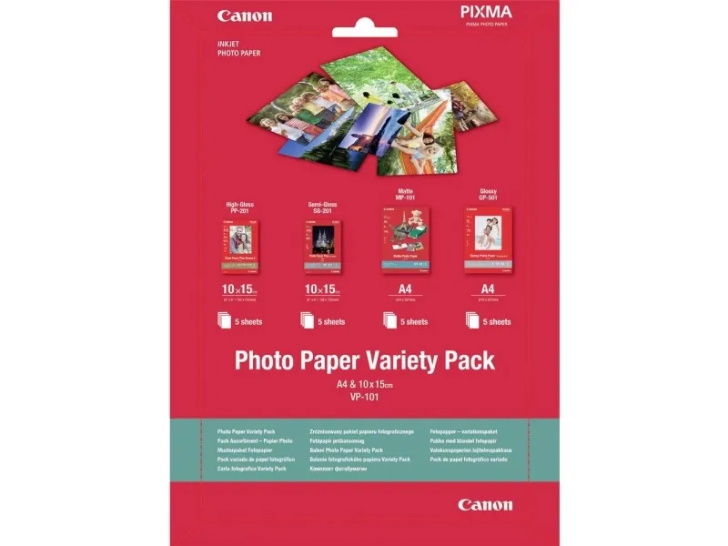 Glanset fotopapir - A4 (210 x 297 mm) - 210 g/m² - 5 Photo Paper Plus Glossy II - glanset fotopapir - 100 x 150 mm - 275 g/m² - 5 Photo Paper Plus Semi-Gloss - fotopapir - 100 x 150 mm - 260 g/m² - 5 Matt fotopapir - A4 (210 x 297 mm) - 170 g/m² - 5