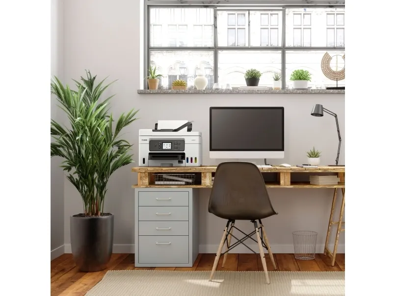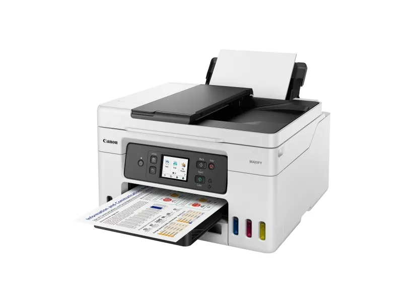 The Canon MAXIFY GX4040 is designed to meet the needs of small to medium-sized offices with its versatile printing, copying, scanning, and faxing capabilities. With a monthly duty cycle of 33,000 pages, the printer ensures high productivity without sacrificing quality. The fast printing speeds of up to 18 ipm in black and 13 ipm in color, along with max resolutions of 600 x 1200 DPI, deliver professional-grade documents and images. The 2.7" touch screen LCD display facilitates easy navigation for various functions.