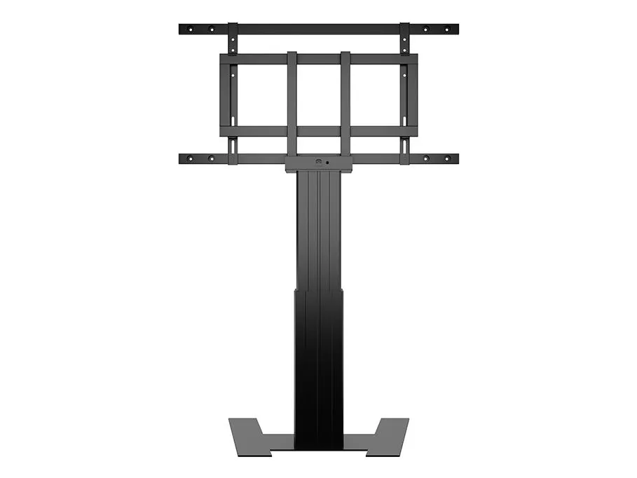 With integrated cable management, this stand keeps wires organized and out of sight, contributing to a clean appearance. The included wired remote control allows for effortless height adjustments, enhancing user convenience. Its floor-standing design ensures stability while being suitable for various environments, from office spaces to public areas.