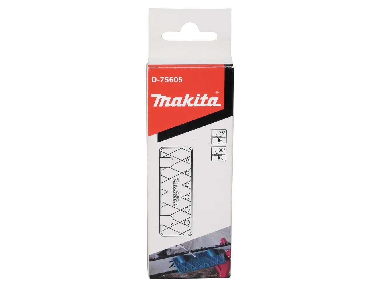 Skarphedshjælp Slibehjælpen af plast sørger for en optimal slibning af savkæder i forbindelse med runde file, som har en 1/4 sekskantoptagelse. Den slibehjælp er udstyret med 2 magneter, som kan monteres på savskinne i en håndevending. Angivelsen af den ønskede vinkel vises over linjer på hjælpen og viser slibevinklen 25° og 30°. Med hullerne på slibehjælpen kan den nødvendige rundpilediameter bestemmes. Passer til alle gængse savsetyper.