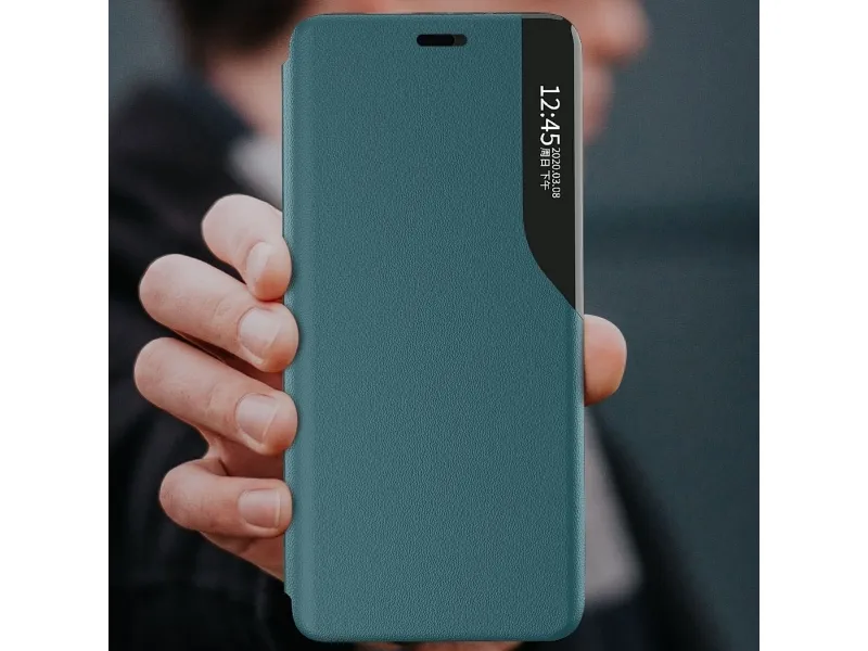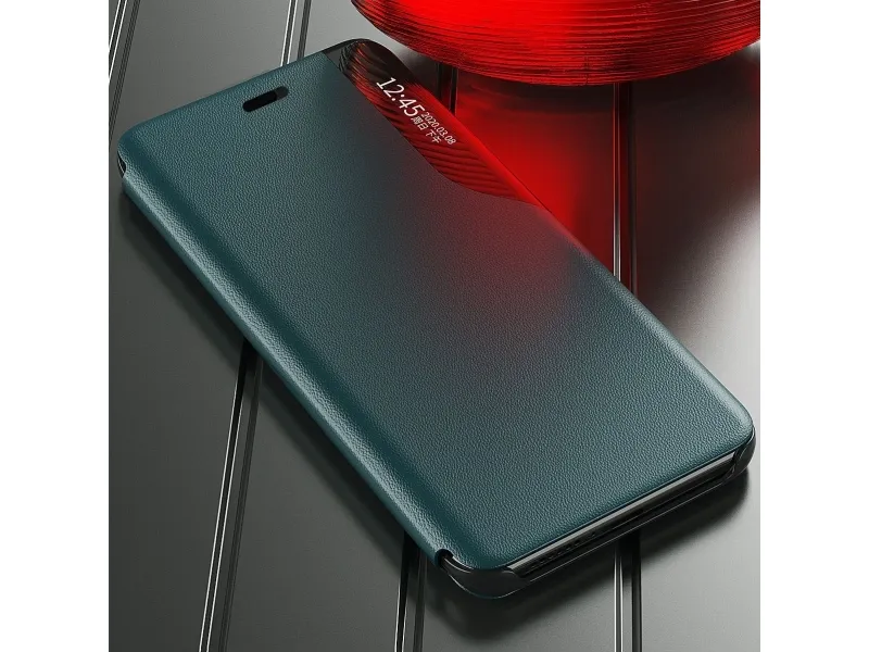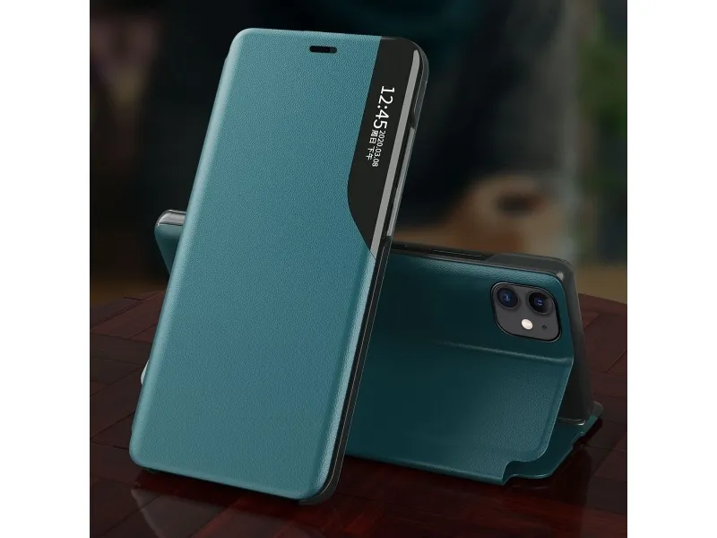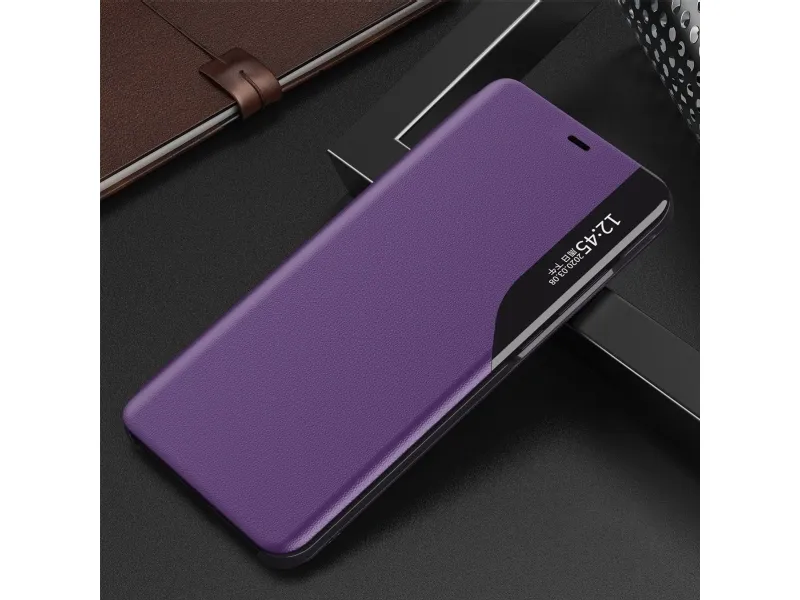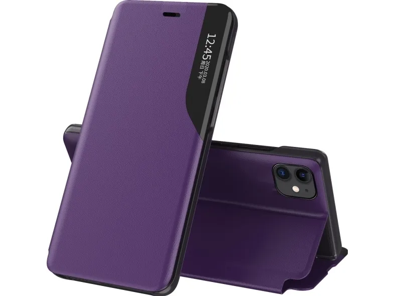 Hurtel Eco Leather View Case elegant deksel med flip-deksel og stativfunksjon for iPhone 13 Pro Max lilla
