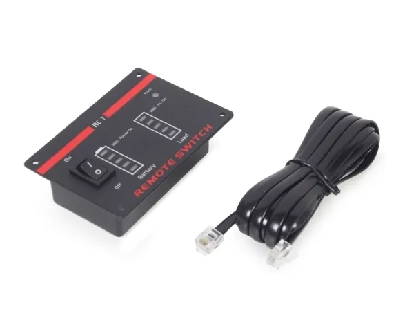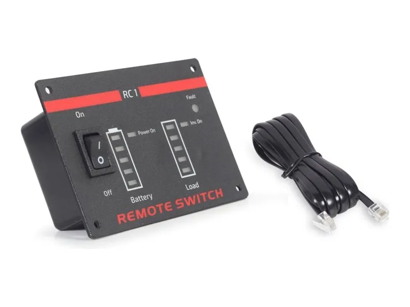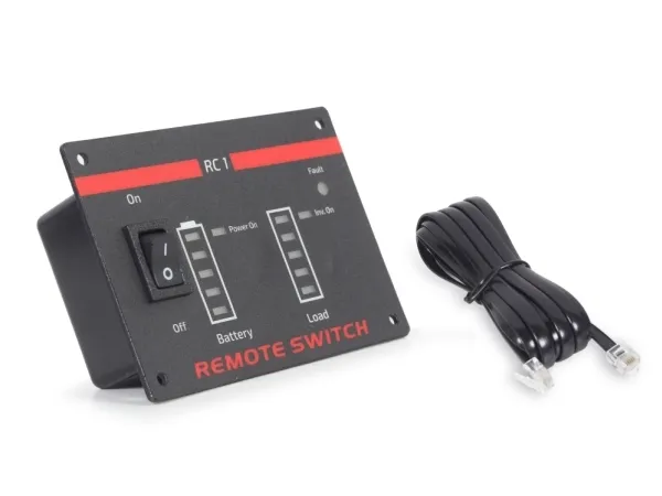 Convenient remote control panel for power inverters that offers useful information on battery status and power output.