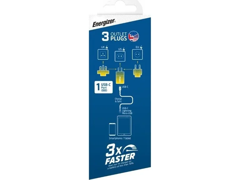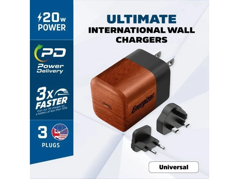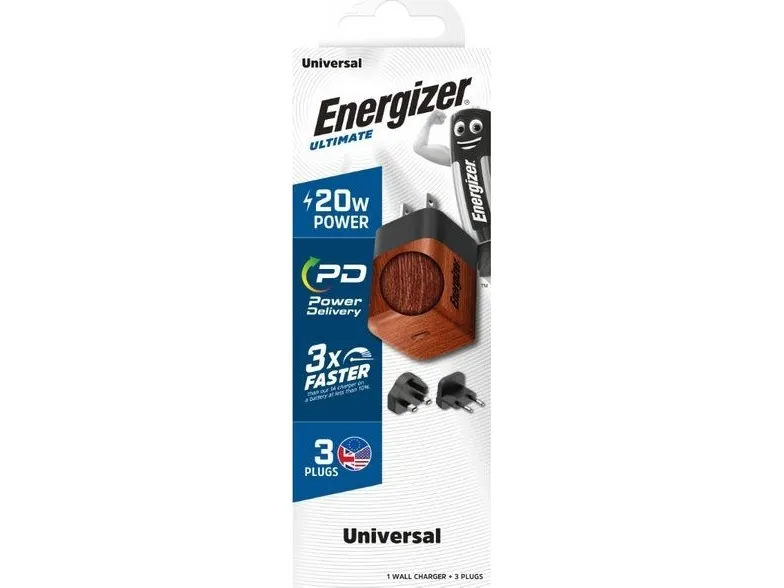 Energizer Ultimate - Multiplug EU / UK / US GaN 20W PD vegglader (valnøtt)