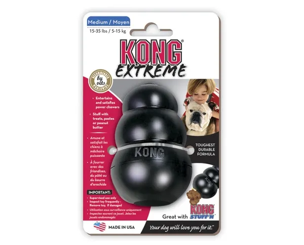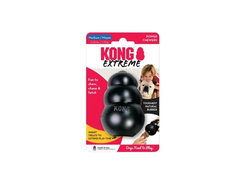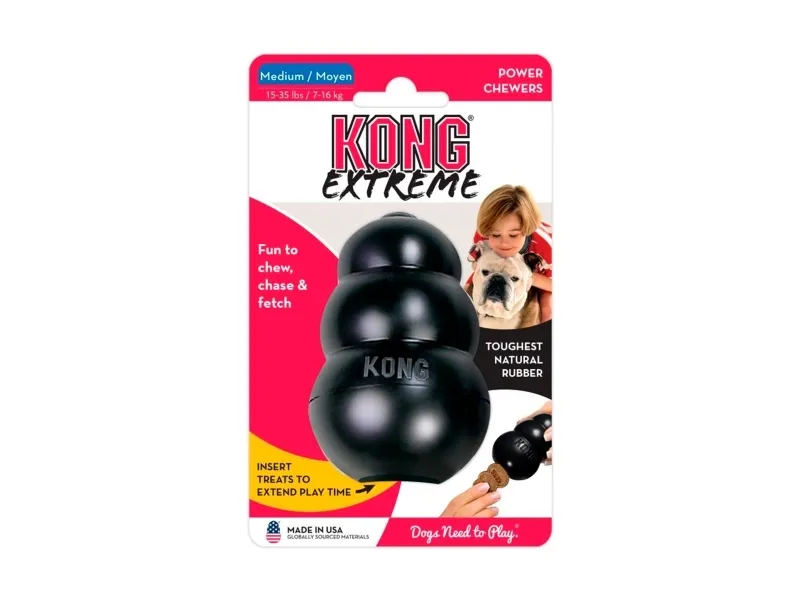 Den allra mest klassiska produkten som har gett namn åt hela varumärket. Svarta serien är den absolut mest slitstarka, går att fylla med godis eller Kongs spraypasta och tål att tuggas på. Hundleksak för hundar med vikt från 5-15kg.