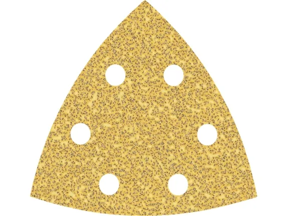 EXPERT C470 sandpapir til deltasliber, 93 mm, G 240, 50 stk. Burrelukning Op til 2 gange hurtigere end standard-slibepapir - slibning af store flader er tidskrævende: Mange slibepapirer arbejder hurtigt med støv og mister deres sliversitet, så den egentlige slibeproces behøver mere tid. Ved hjælp af kombinationen af skarpe korn og speciel teknologi, som forhindrer tilstopning, beholder Expert C470 slibepapir sine særlige egenskaber. Det betyder, at du kan arbejde hurtigere og længere uden at skulle gå på kompromis med sliberesultatet. For at opnå den bedst mulige Slibeflade ved vores produktionsmetode tilpasses frøene for at holde dem skarpe oven på dem for at opnå en aggressiv kornopretning. Så dækker vi dem med en stærk binding og en belægning for at forhindre tilstopning. Dette sørger sammen med en optimal korntæthed for maksimal hastighed og minimal tilstopning. Fastsæt mindre tid med slibning og mere arbejde på samme tid – med Bosch Expert C470 sandpapir. Enkel fastgørelse med velcrolukning.