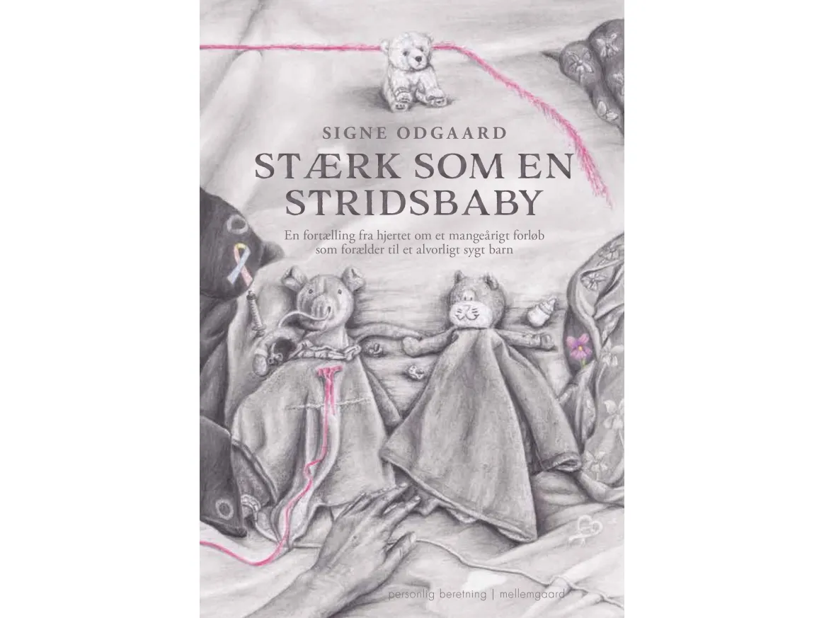 Hvad der startede som en dagbog, endte med – efter 8 år – at blive til bogen Stærk som en stridsbaby. Bogen skildrer på både stærk, barsk og rørende vis, hvordan livet som forælder til et kritisk sygt barn kan forme sig. Hvor ufattelig hårdt det er at se sit barn lide, være i den ene narkose efter den anden og løbende få sin rygsæk fyldt med traumatiserende oplevelser – helt uden mulighed for at skærme hende. Men også hvor hårdt det er samtidig at skulle forstå og agere blæksprutte i sit barns sag i et fortravlet sundhedsvæsen. Og oveni at kæmpe med social-, daginstitutions- og skolesystemet. Og nå ja, så lige sørge for at have overskud til det syge barns tvillingesøster, sit arbejde, parforhold, venskaber osv. – alt imens ens egen krop er fyldt til randen af stress, søvnmangel, bekymring og ensomhed. Men kærlighed kan flytte bjerge, og når det handler om ens børn, kan man som løvemor strække sig langt og stædigt holde fast i håbet om, at der er lys forude. Uddrag af bogenDa vi gik ind ad døren til hendes stue, mødte et overraskende og bekymrende syn os. Stuen var fyldt med mennesker i hvide kitler, som alle så alvorlige og koncentrerede ud. De var meget optagede af Vigga og af tallene på de maskiner, der monitorerede hende. Mit hjerte hoppede op i halsen! Jeg spurgte hurtigt en af lægerne, hvad der foregik. Hun trak os til siden og fortalte, at de ikke kunne få styr på Viggas lungekredsløb, som var forhøjet. Hun kunne derfor ikke ilte sit eget blod, og situationen var yderst kritisk. De havde, uden held, forsøgt med flere forskellige tiltag, og der var nu kun én ting tilbage, som kunne forsøges for at redde hendes liv. Om forfatteren Signe Odgaard, født 1984, er mor til 8-årige tvillingepiger, hvoraf den ene er født med misdannelsen diaphragma hernie. Signe er uddannet socialrådgiver og cand.soc.