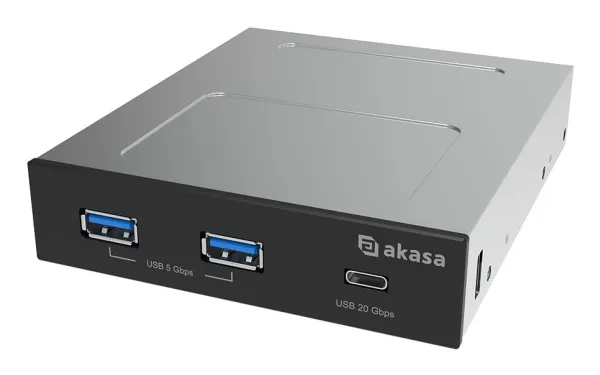 The Akasa USB 3.2 Gen 2x2 Type-C panel locates in PC chassis 3.5" drive bay and gathers all USB data connections in one easy accessible place. One USB 3.2 Gen 2x2 Type-C port and two USB 3.2 Gen 1 Type-A ports expand the system real-time connectivity to create computing experience with no limitations.