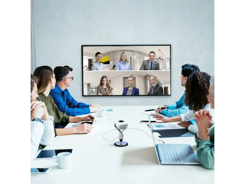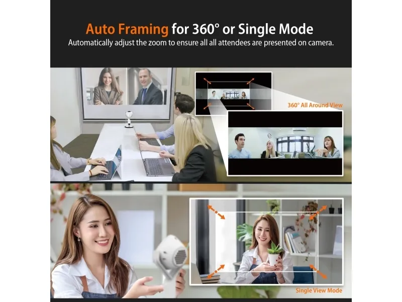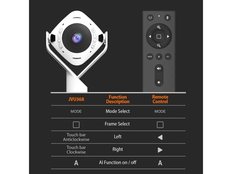 JVU368-N skiller seg ut med 360-graders panoramautsikt, digital zoom og smarte sporingsfunksjoner, noe som gir mulighet for dynamisk videoramming som holder alle deltakerne i fokus. HD-videosamtaler blir mer oppslukende takket være 1080p-videomodusene som drives av en Sony Starvis IMX335-sensor. Klar og tydelig lyd er avgjørende, og denne enheten leverer med sin innebygde mikrofon og høyttaler, forbedret med AEC (Acoustic Echo Cancellation) og ANR (Automatic Noise Reduction).