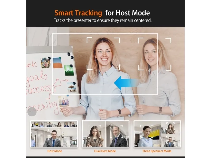 AI-kontroll, Acoustic Echo Cancellation (AEC), panoramavisnig, Automatic Gain Control (AGC), Automatic Noise Reduction (ANR), 6 forhåndsdefinerte videomodus, berøringslinjekontroll, reverse function (flip and mirror), justerbare synsfelt, High Dynamic Range (HDR), smartsporing, automatisk innramming, Zoomkompatibel, Facebook Messenger-kompatibel, Skype-kompatibel, kompatibel med Microsoft Teams, Crystal Clear Audio, vertsmodus, dobbel vertsmodus, electronic pan/zoom (remote control), enkeltvisningsmodus, Sony Starvis IMX335 sensor, LED-indikator, kompatibel med Google Hangouts, BlueJeans-kompatibel, Cisco-kompatibel, GoToMeeting-kompatibel, Slack-kompatibel, justerbart stativ, stativstøtte, USB-videoklasse (UVC 1.1)