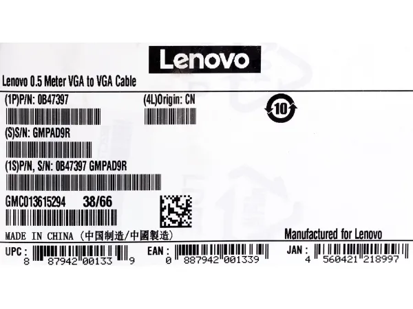 Lenovo 0.5 Meter VGA to VGA Cable is designed for ThinkCentre Tiny PCs. It is uniquely sized to be the perfect fit for connecting your desktop and monitor when mounted close together.