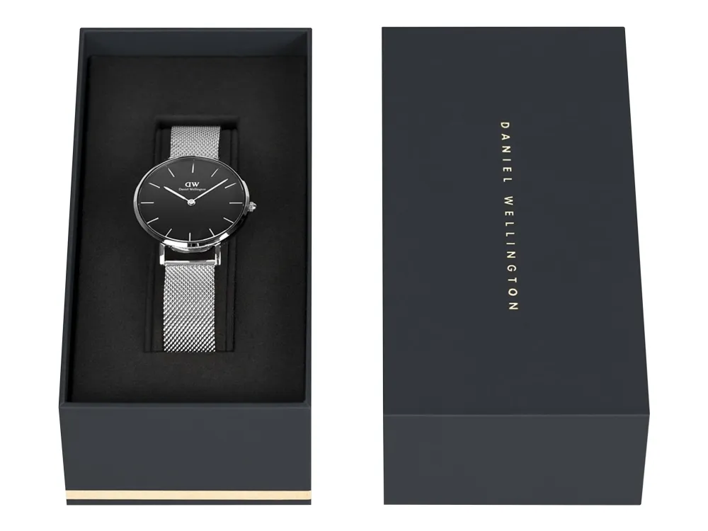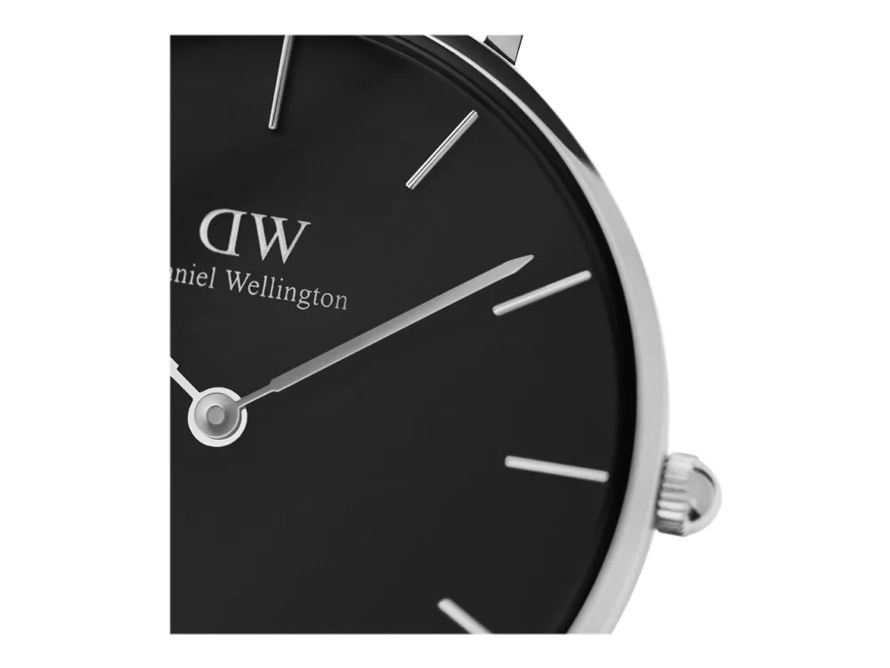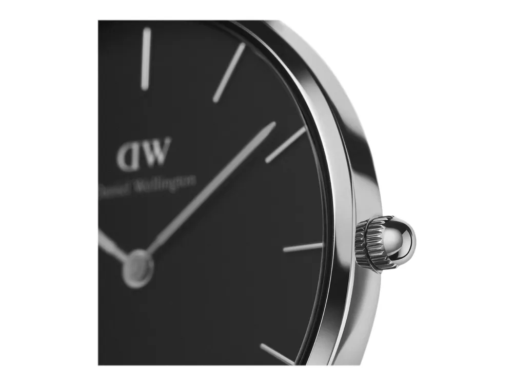 Petite Sterling med svart urskive er en fremragende kombinasjon av stil og holdning. Den har et ordentlig designeruttrykk og er den perfekte klokken til enhver anledning.