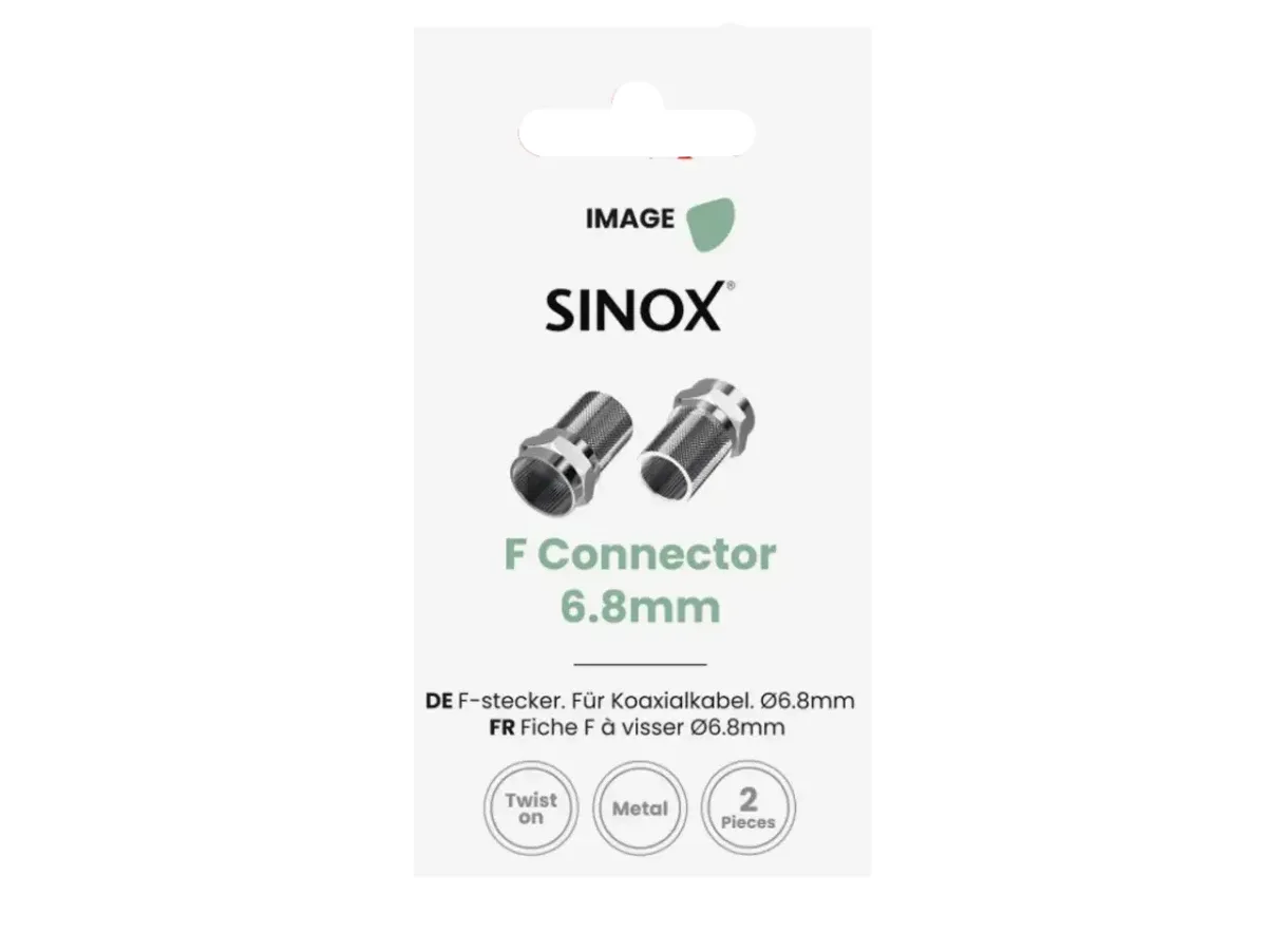 Sinox F-stik bruges til at sætte på antennekablet mellem for eksempel din antenne på loftet og antennefordeleren.