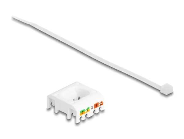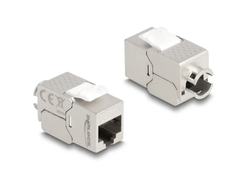Built with a slim profile and a durable zinc die-cast housing, this connector fits into various setups, including keystone ports sized at 19.2 x 14.9 mm. Additionally, it comes equipped with a zip tie and cable manager, promoting organized cabling solutions for a tidy workspace. It has one RJ-45 female connector on the left and one LSA connector on the right, meeting the T568A/B wiring scheme for efficient network performance.