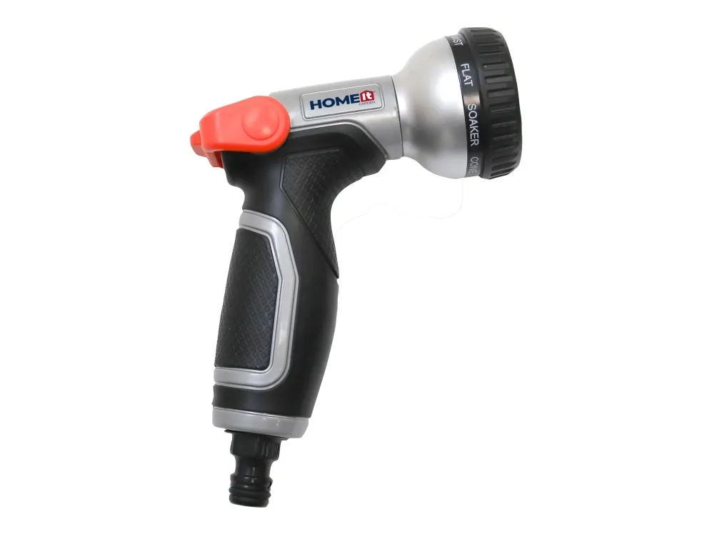 Ergonomisk, funktionelt, praktisk er hvad man med få ord vil omtale denne sprøjtepistol med, den har også 9 sprayfunktioner og med regulering i moderne og spændende design. Den justerbare brusepistol fungerer med både lavt og højt vandtryk. Vandgennemstrømningen kan let justeres ved hjælp af en tommelfingerbetjent bøjle.