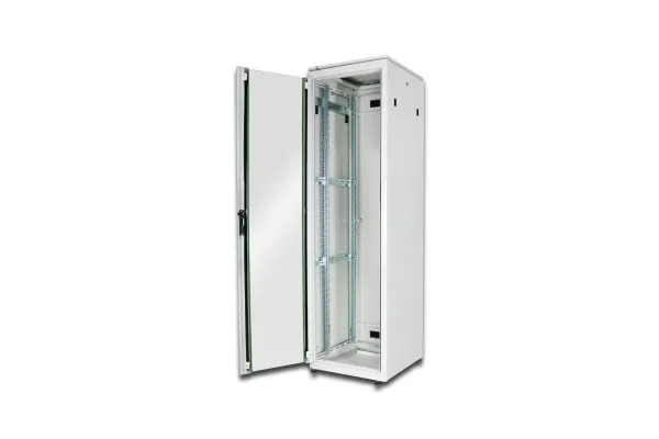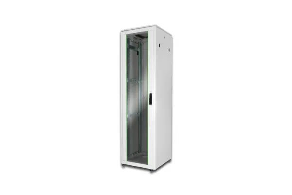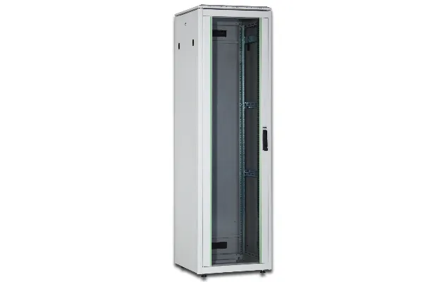 The DIGITUS network cabinet unique series is designed and produced for cabling and networking components. They provide maximum optimization resulted to an optimum performance in between quality and added value. Each cabinet is designed with strength, ease of use and aesthetics in mind. Features such as 1 unit marking on the mounting profiles, easy and quick release doors and side panels, fully adjustable front and rear profiles of the cabinet make the product extremely attractive to installers. The incredible design of the unique series is rounded up with the use of a framed smoked safety glass front door fitted with a swing handle lock. Door hinging can be quickly reversed left to right. The cabinet includes lockable glass front door, lockable steel back door and lockable side panels.