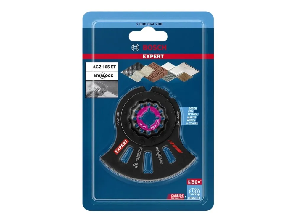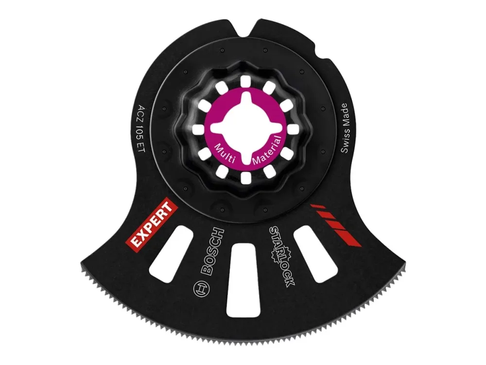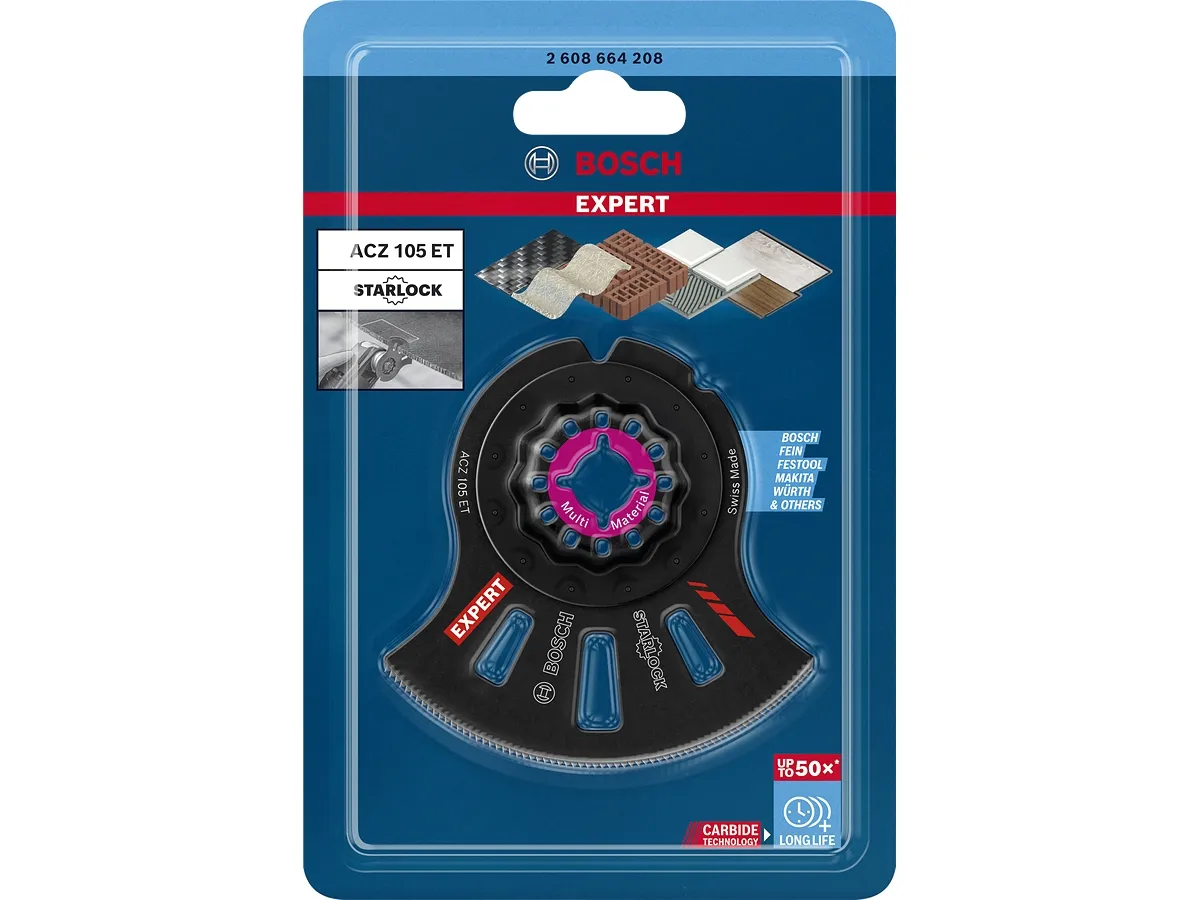 Striking cement behind a doorframe or under a floorboard used to bring work to a halt for an expensive blade change. Not with the EXPERT MultiMaterial Segment, a blade tough enough to cut grout and mortar as well as solid surface counter tops and abrasive laminates and composites. It just keeps on going.