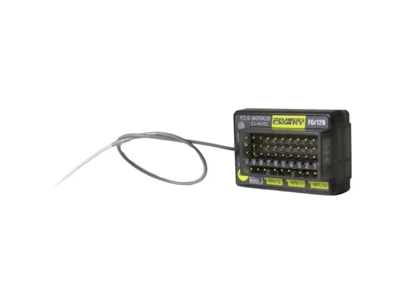 Modtager 12-kanals FGr12B til PL18 Meget lille modtager til funktionsmodeller som lastbiler, byggemaskiner og både. På grund af den lave størrelse og vægten, kan denne modtager anbringes stort set overalt! Den moderne 2,4 GHz protokol AFHDS3 gør overførslen særligt sikker! Firmware-opdatering via sender Paladin PL18EV.